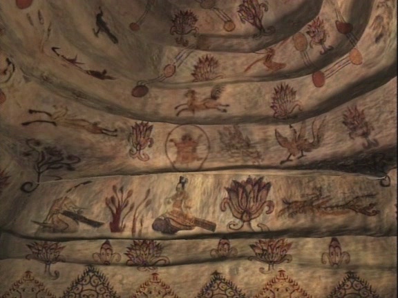 “거문고 타는 신선이나 글을 쓴다든가 여러 가지 모습을 하고 있는 신선들은 기본적으로 연꽃으로 만들어진 새로운 세계에 존재하는 자들입니다. 그래서 연꽃이라는 것은 불교의 개념에서는 내세 정토에서 새롭게 태어나는 도구가 됩니다. 그러니까 결국은 이 천정부의 하단부는 연꽃을 통해서 새롭게 태어나는 세계를 표현하기 위한 부분이라고 할 수 있습니다.”