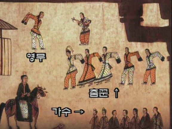 여러 사람의 무용수가 등장하는 군무는 무용총 벽화에 잘 표현되었다.